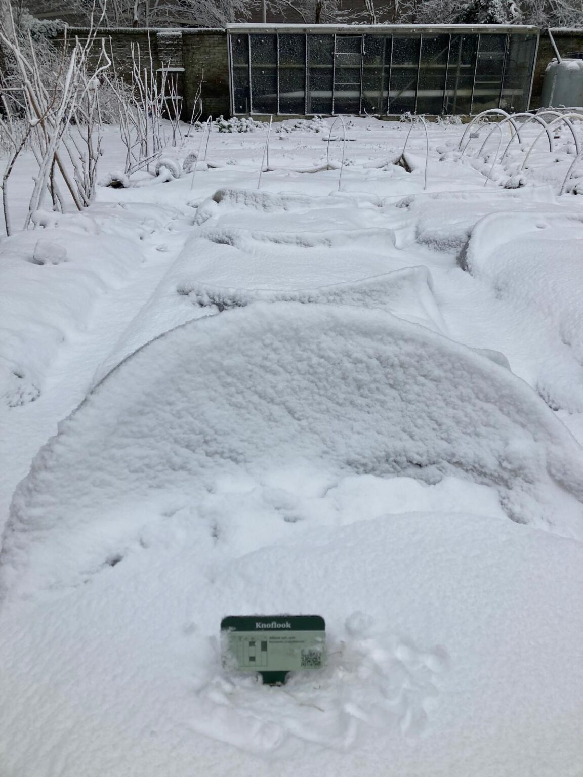 Ook in de Tuin van Oostduin lag er behoorlijk wat sneeuw. Dat leverde prachtige foto’s op en zelfs in de sneeuw zie je onze plantbordjes nog staan. Handig, zo weet je waar je niet moet gaan staan en welke planten…